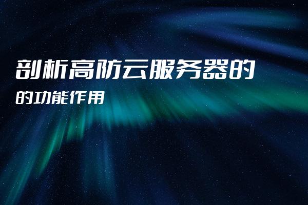 剖析高防云服务器的功能作用